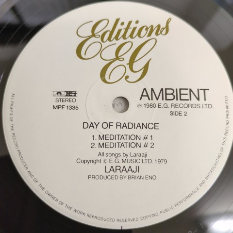 アメリカ人ツィター奏者LaraajiがBrian Enoプロデュースでリリースしたアンビエント・シリーズの第三弾となる80年作。ミニマルに響くツィターが桃源郷へと誘うA面「The Dance 」、タイトル通り瞑想的に浮遊するB面「Meditation」の二部構成からなるニューエイジ・アンビエント大傑作。両面とも昇天必至の極上盤!