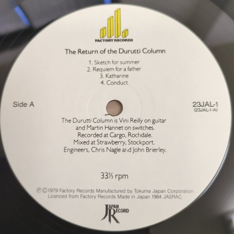 ギタリストVini Reilly率いるUKのバンドThe Durutti Columnの80年1stアルバム。プロデュースはJoy DivisionやNew Orderを手掛けるMartin Hannet。鳴った瞬間に景色がセピア色に一変するようなVini Reillyの淡く儚げに揺らめくギターがとにかく素晴らしい!ポスト・パンク傑作。