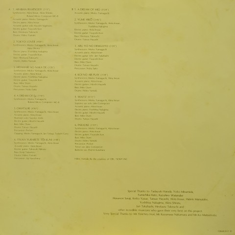 83年作『月姫』の価格も年々上昇している近年再評価著しいSSW、山口未央子の80年デビュー作。山口美央子の独特としか言いようがないオリエンタルな作風のアレンジ・楽曲と松武秀樹がプログラミング担当したバレアリックな質感のシンセサイザーが相乗効果を起こして生まれたエスノ・シンセ・ポップ傑作!