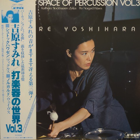 A面に現代音楽を代表するドイツの作曲家、シュトックハウゼンの「Zyklus」を、B面にデンマークの現代音楽作曲家、ノルガルドの「Waves」を収録した、世界で活躍する名打楽器奏者、吉原すみれの81年作。20種類以上の様々なテクスチャーの打楽器が素晴らしい音質でカラフルに鳴り響くシュトックハウゼンの「Zyklus」、言葉では言い表せないほどに残響音が凄いことになる中盤や、打楽器がスピーカーの中で飛び跳ねる後半など新しい音響体験ができるノルガルドの「Waves」と両面最高です。これは是非スピーカーを通して爆音で!