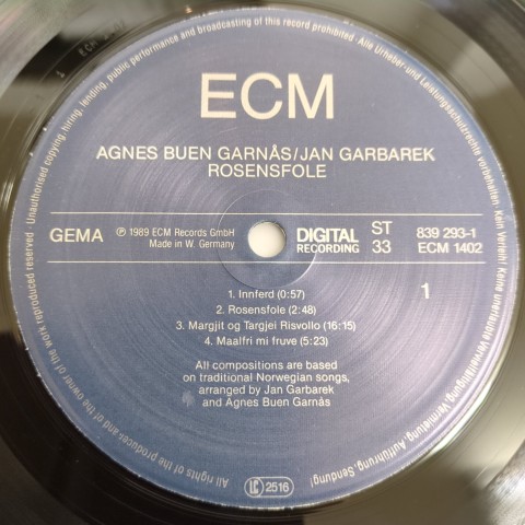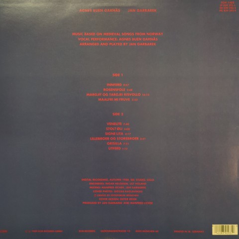 ノルウェーの伝統歌手Agnes Buen Garnasと同国のジャズ・サックス奏者Jan Garbarekによる89年作。Agnes Buen Garnasが歌うノルウェー中世音楽の調べと、すべてJan Garbarekが演奏したシンセサイザー、サックス、パーカッションの多重禄音による現代的音響の融合。二人のノルウェー古楽への探求が記録された一枚。名盤!