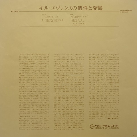 Creed Taylorプロデュース、Eric Dolphy、Steve Lacy、 Wayne Shorter、Elvin Jones、Gary Peacockなどが参加した64年作。バス・フルート、フレンチ・ホルン、トロンボーン、テナー、バスーンがあいまいに溶けあう、Gil EvansがClaude Thornhill時代から創り上げてきたエーテル・サウンドと呼ばれる蜃気楼のようなオーケストレーションの到達点と言える「The Barbara Song」を始め、Gil Evansの美学がすべて詰め込まれた、アコースティック編成でのラスト・アルバムにして最高傑作。この後Gilはエレクトリック・ギル・エヴァンスの幕開けとなる「アンペックス・アルバム」まで子育てにより5年間の沈黙期間に入ります。