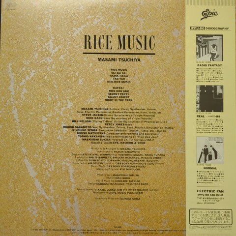 一風堂の土屋昌巳が82年にリリースしたファースト・ソロ・アルバム。坂本龍一や仙波清彦、JapanのMick KarnとSteve JansenにBrand XのPercy Jonesなどが参加。オリエンタルな「Rice Music」、沖縄音楽を取り入れた「Haina-Haila」、坂本龍一作編曲によるカッコ良すぎの「Kafka」など、この時期ならではの様々な要素が混ざり合ったジャパニーズ・ニュー・ウェイヴ傑作。Mick Karnのぶっ飛んだフレーズのフラットレス・ベースも最高!