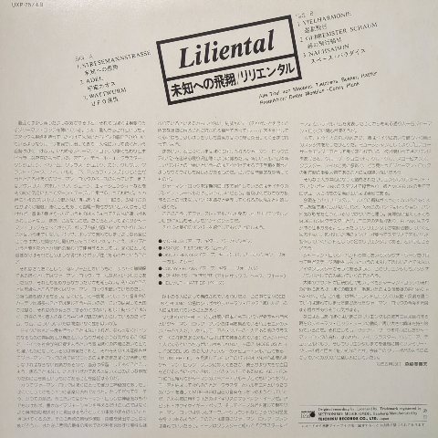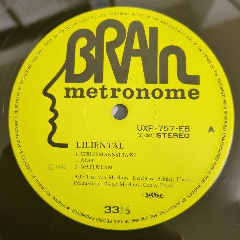 ドイツの奇才エンジニア/プロデューサー、Conny Plankとジャーマン電子音楽ユニット、Clusterのヘンな音担当、Moebiusが中心となった6人組のグループ、Lilientalの79年唯一作。ふわふわと空中を浮遊し続ける「Adel」、いかにもConny Plank&Conny's Studio印といった、音のお化け屋敷に迷い込んだような「Wattwurm」、鳥のさえずりも入ったどこまでも穏やかな「Gebremster Schaum」などCluster、Harmonia好きは必聴の内容となっています。怪しげなオッサン6人がニヤニヤしながらこっちを睨んでいるイラストのジャケットでは絶対に売れないと判断したであろうと推測できる、オリジナルとは違う別ジャケットに変えられた日本盤。